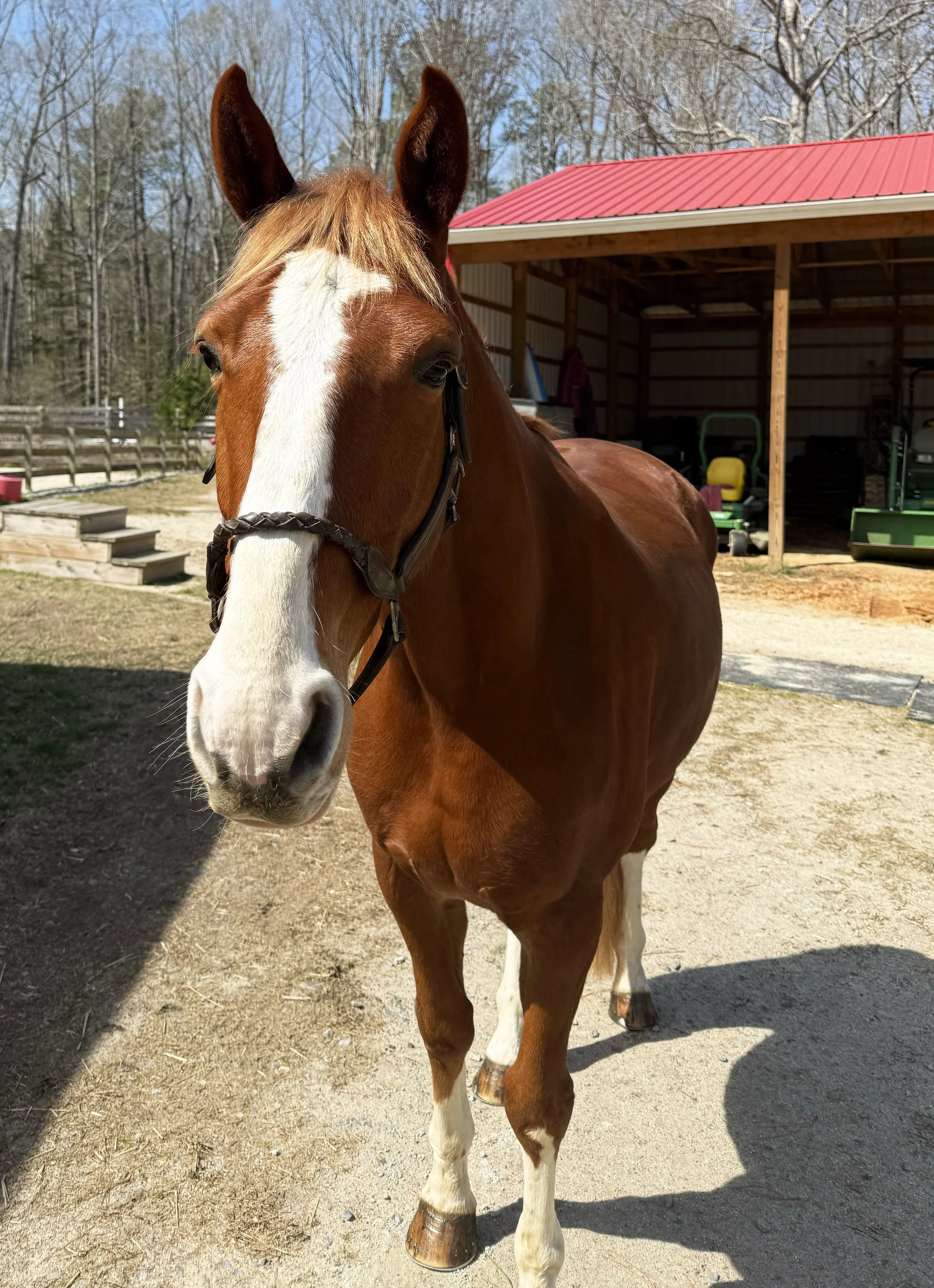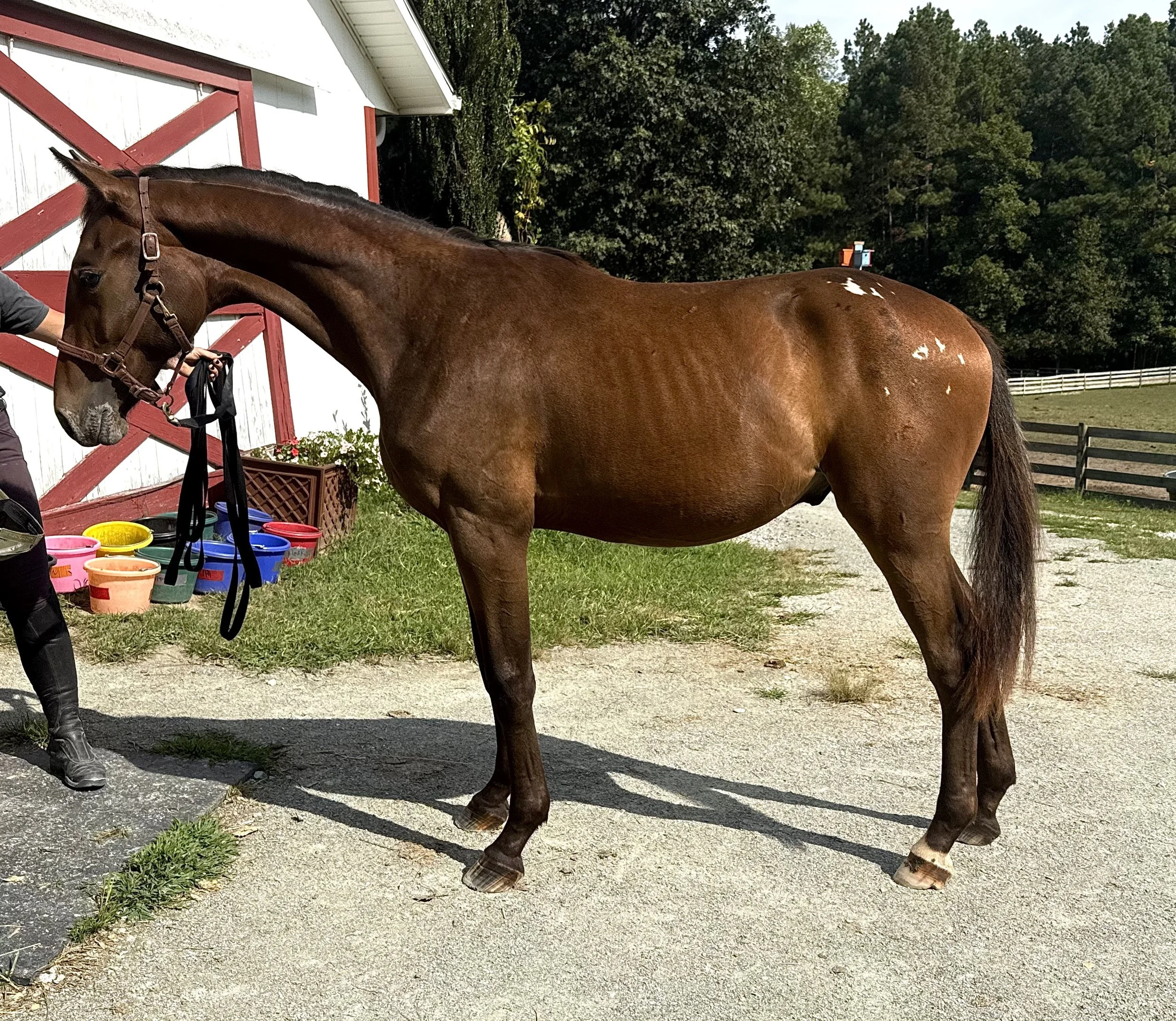 When he first arrived, he took in his new environment well and was appropriately curious about his new surroundings. He was settled within the first 48 hours and was ready for riding work after the first week.