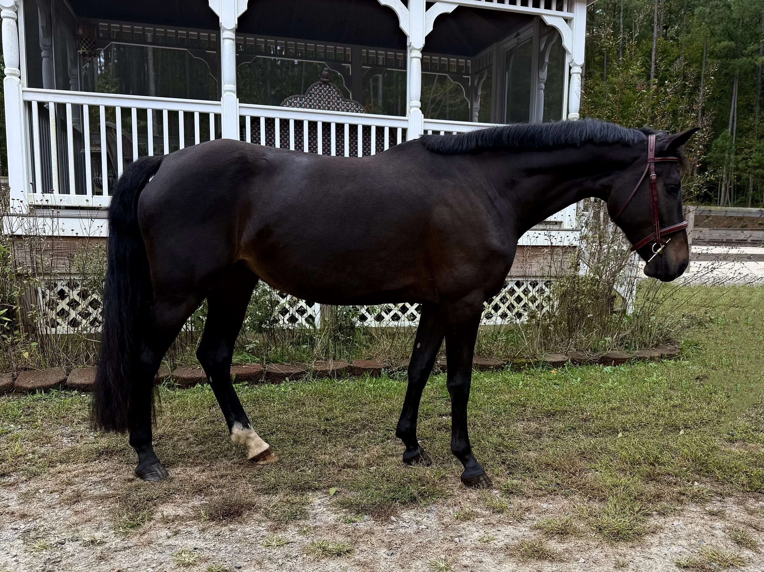 Right now, we think he would be best suited as a prospect for Eventing, a Jumper or the Equitation. However, he could also be trained for the hunter ring (he may just not place in the hack, but he does have a cute and square jump). He is not a hot blooded horse and does take a supporting leg to keep going, but is not a kick ride.